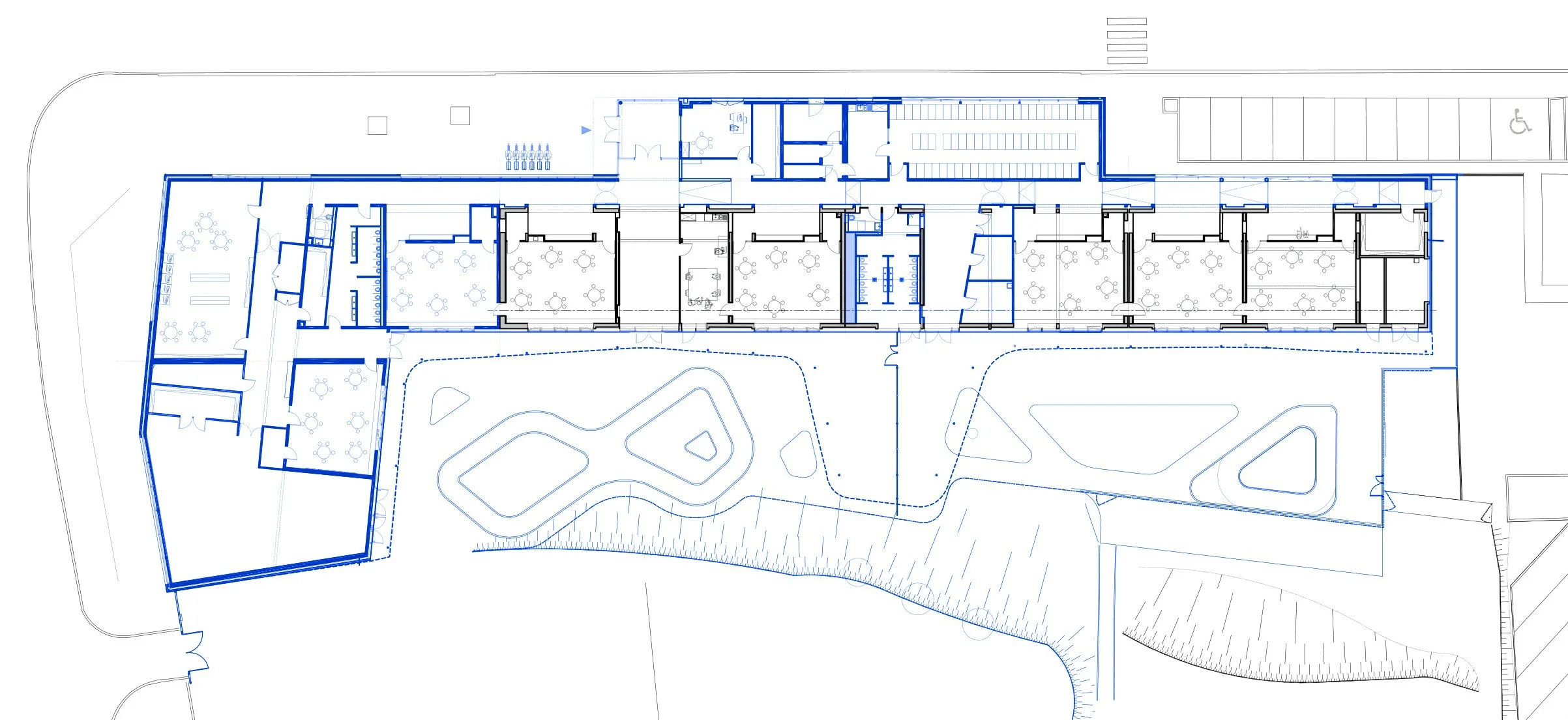 En englobant complétement l’existant, entre circulation commune intelligible et préau fédérateur, le projet propose une refonte esthétique complète. L’intérêt est donc de redonner à l’établissement une image valorisante tout en tirant parti des points forts du site.